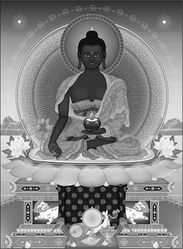 • Представить образ Медицинского Будды, изображенный на рисунке выше.