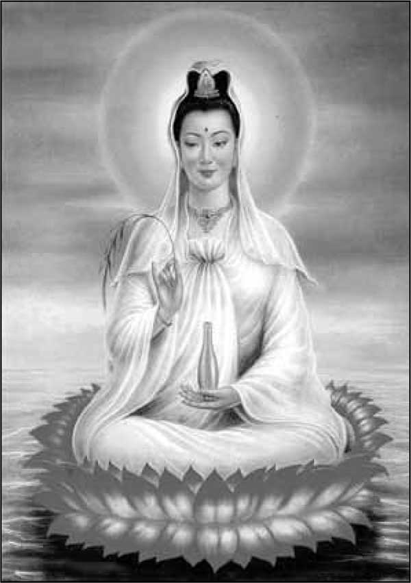 Гуань Шинь – это Богиня Милосердия (Сострадания), одно из наиболее популярных божеств буддизма. Как Бодхисаттва сострадания, она слышит плач всех существ («созерцающая звуки мира», или «внемлющая звукам мира»). Цвет этой богини – лавандовый, или мягкий фиолетовый. Её пять главных достоинств – милосердие, скромность, храбрость, правосудие и мудрость.