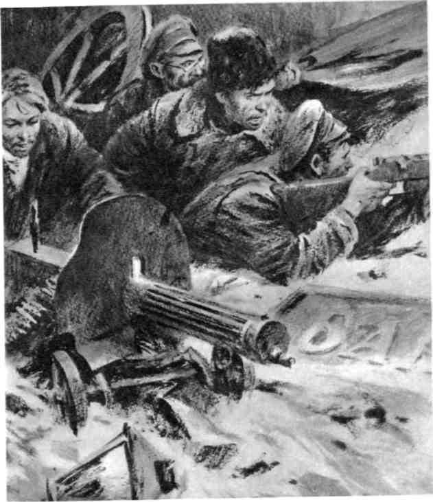 На Театральной площади по «Метрополю» садят трехдюймовки. Под пулеметным огнем отряд пробивается к гостинице.