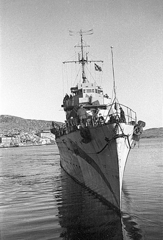 Советский эсминец «Гремящий» на рейде Полярного, 1943 г.