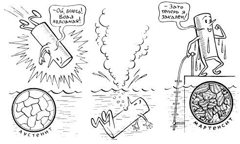О том, что сталь, нагретая в огне, а затем быстро охлажденная, становится твердой и хрупкой, знали давно. Еще в «Одиссее» Гомера – греческой поэме, создание которой относят к IX–VIII веку до нашей эры, – написано: «…как погружает кузнец раскаленный топор иль секиру в воду холодную, и зашипит с клокотаньем железо, крепче железо бывает, в воде и огне закаляясь…»