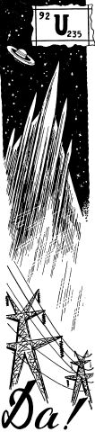 И поэтому атомная энергетика развивается семимильными шагами. В 1954 году вступила в строй первая в мире атомная электростанция Академии наук СССР мощностью в 5 тысяч киловатт. Осенью 1958 года дала промышленный ток первая очередь крупнейшей в мире советской атомной электростанции, общая мощность которой будет составлять 600 тысяч киловатт. А в декабре 1957 года спущен на воду гигантский ледокол «Ленин». Мощность двигателей этого ледокола, работающего на атомном топливе, составляет 44 тысячи лошадиных сил.