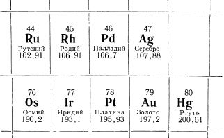 Целый ряд важнейших применений имеют эти металлы: и серебро, издавна бывшее наряду с золотом всеобщим эквивалентом, в древности ценившееся дороже золота; и платина, сегодня более дорогая, чем золото; и редкие металлы платиновой группы, хотя их несравненно меньше, чем золота, хотя они совсем недавно по сравнению с золотом стали служить человеку.