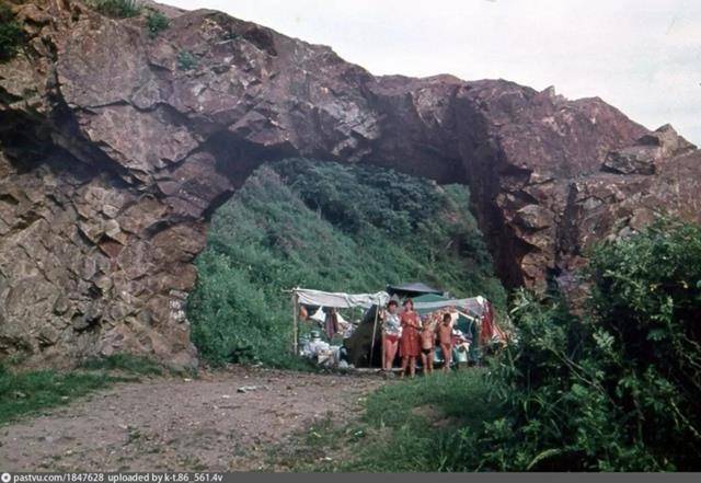 Утро разбудило отдыхающих и отдыхающие сильно удивились, увидев нас в устье ручья. Увиделись и потянулись знакомиться. Мы же снова уселись в свою машину и, вернувшись на дорогу, проехали вперёд дальше на пляж к арке, что давала проход-проезд к дальнему пляжу. Ехать нужно было по песку и сквозь арку не ездили даже на мотоцикле, не то что на машинах. Зато ходили ногами. Я не был сам лично на «Трёх поросятах», а потому на арку хотел посмотреть и включив блокировку колёс, погрёб по песочку по самой кромке прибоя, где палатки не стояли по причине штормовой опасности.