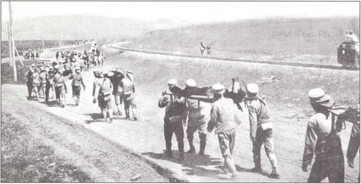 Вынос убитых и раненых японцами с позиций под Порт-Артуром
