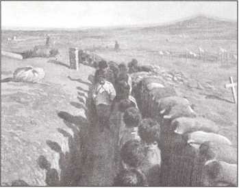 Генерал Путилов проходит по траншее, здороваясь с нижними чинами