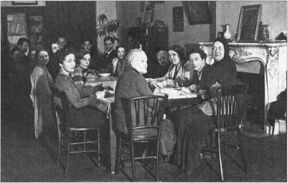 Столовая в общежитии матери Марии (ул. Лурмель, 77). 1931–1933 гг. В торце стола, в очках, – мать Мария. Слева от нее – ее мать Софья Борисовна Пиленко, справа – сын Юра Скобцов