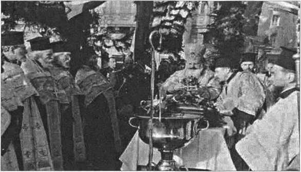 Митрополит Стефан совершает чин елеосвящения в Софии. 1942 г.