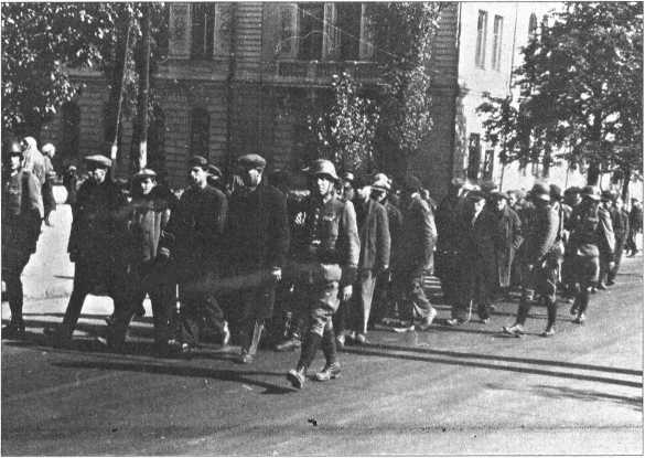 Евреев ведут на расстрел по улицам Киева. 1941 г.