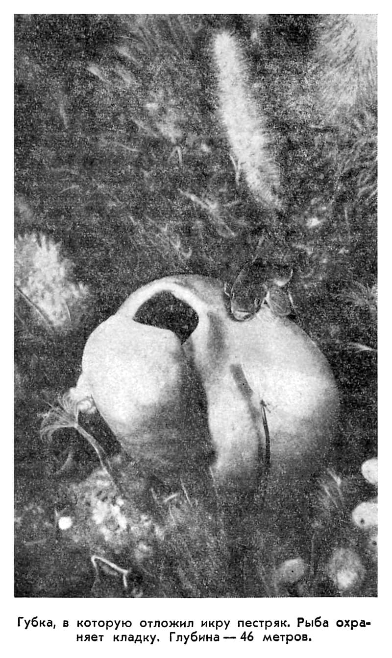 Подводное фотографирование очень сильно отличается от обычного. Под водой наводить на резкость приходится на глаз, а так как предметы имеют непривычные размеры и кажутся ближе, чем в действительности, снимать так, как это делается на поверхности – выбирая кадр, потом определяя расстояние и устанавливая его на аппарате – попросту невозможно. Можно только научиться более или менее точно устанавливать аппарат на одно, самое большее два постоянных расстояния и всегда снимать с них. Так я и делал – снимал почти всегда с расстояния 1,5 или 2 метра. Но даже самый резкий снимок не дает вполне точного представления о подводном мире. Одна из важнейших причин этого состоит в том, что свет импульсной лампы совершенно непохож на свет, существующий под водой. Лампа-вспышка на миг озаряет кусок морского дна, все животные и растения вспыхивают своими красками. Но там, куда свет лампы не попадает, получаются резкие черные тени, а вдали – густая тьма. Перед водолазом подводный мир предстает совсем другим: на снимке исчезает мягкость голубого света, богатство полутонов, приглушенные оттенки различных животных, полностью пропадает перспектива, рождаемая постепенным исчезновением предметов в бездонной синеве. Мне не только самому не удалось сделать фотографию, передающую всю красоту и очарование подводного мира, но и вообще таких снимков почти не встречалось. На Баренцевом море удалось получить неплохие снимки, сочетая подсвечивание передних планов лампой-вспышкой с естественным освещением далей, но здесь и этот прием не годился – естественная освещенность была слишком слаба. Пришлось отказаться от надежды получить первоклассный художественный снимок и ограничиться документальными фотографиями, представляющими научную, а не художественную ценность, показывающими, что обитает на дне, но отнюдь не то, как это выглядит под водой.