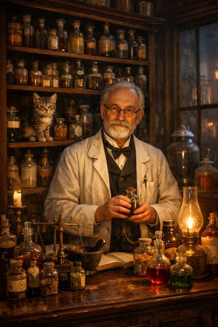 Колокольчик над дверью мелодично звякнул, и я оказался в царстве стеклянных банок и запаха лекарственных трав. За стойкой возвышался провизор лет сорока, в белом халате и круглых очках.