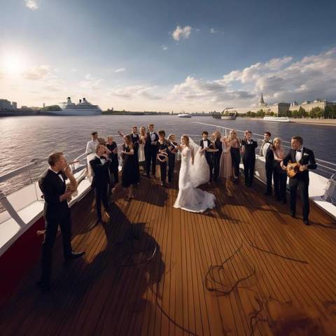 А потом поехали на причал «Китай-город/Устьинский сектор 'В», погрузили всех гостей на арендованный круизный теплоход и отчалили. Кроме выпить/закусить, фотографа и официантов ещё взяли с собою тамаду с баяном, музыкантов и цыган.