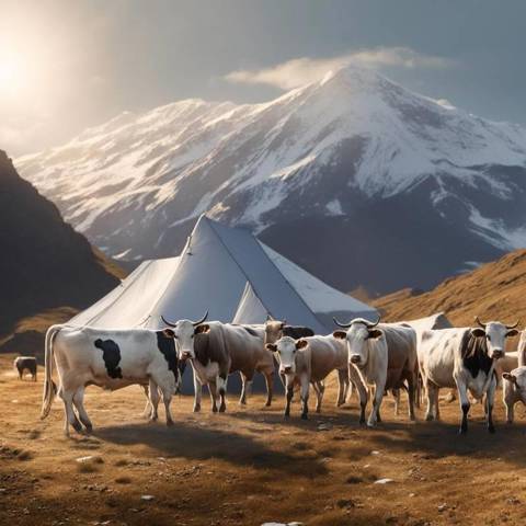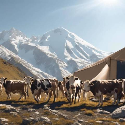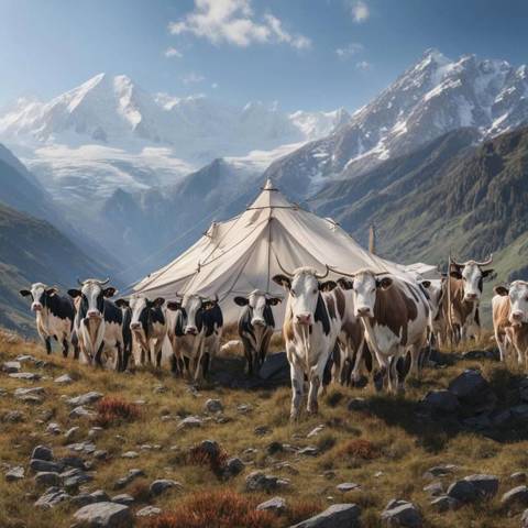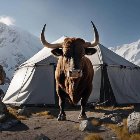 Здоровенный бугай с громоподобным сиплым рычанием принимается тереться об антенну и моментально срывает противовес. Коровы тоже подходят и становятся шеренгой, тупо глядя на лагерь. Бугай столь величествен, что Вадим сначала было решает трусливо отлежаться в палатке, надеясь, что все как-нибудь само собою утрясется. Но, бугай приглашает чесаться еще трех коров, видимо, самых любимых, и они начинают шумно мочиться у Вадима над ухом, а все стадо двигается прямо на лагерь. Тогда Вадим судорожно заряжает ружье и идёт искать пастуха, которого, разумеется, нигде нет! Тогда Вадим возвращается (коровы тем временем подходят вплотную) и орёт бугаю: