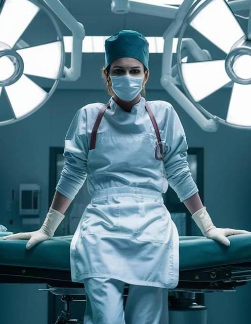 Тележка со смятой простынёй. А у пустого резекторского стола стоит Элла, одетая в полное боевое своё облачение – одноразовый комбинезон, маска, перчатки, резиновые сапоги, фартук, дополнительный колпачок на волосы… и молча смотрит на стол.