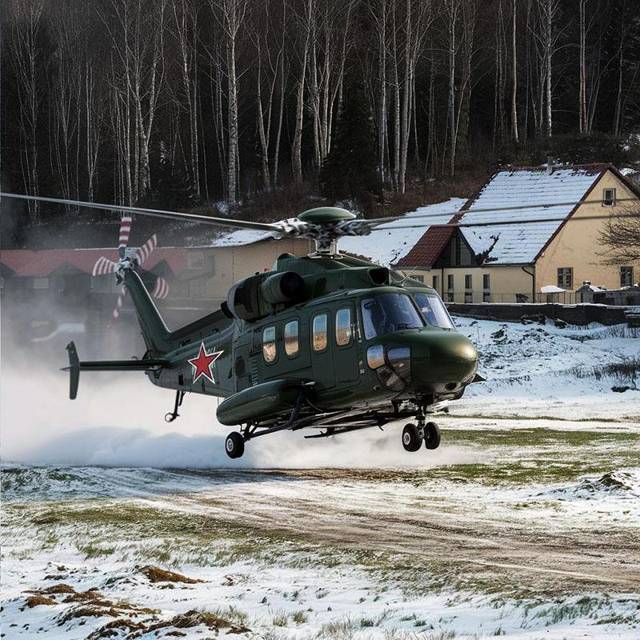 А это военный вертолёт МИ-8. Тёмно-зелёный и с красной звездой на боку. Он завис над Бубенцами и потихоньку идёт на посадку, размётывая под собою огромные тучи снега. Естественно вся деревня уже повылазила во дворы и удивлением смотрит на это необычное зрелище. Да прилетал ли вообще в эти края вертолёт когда-нибудь?