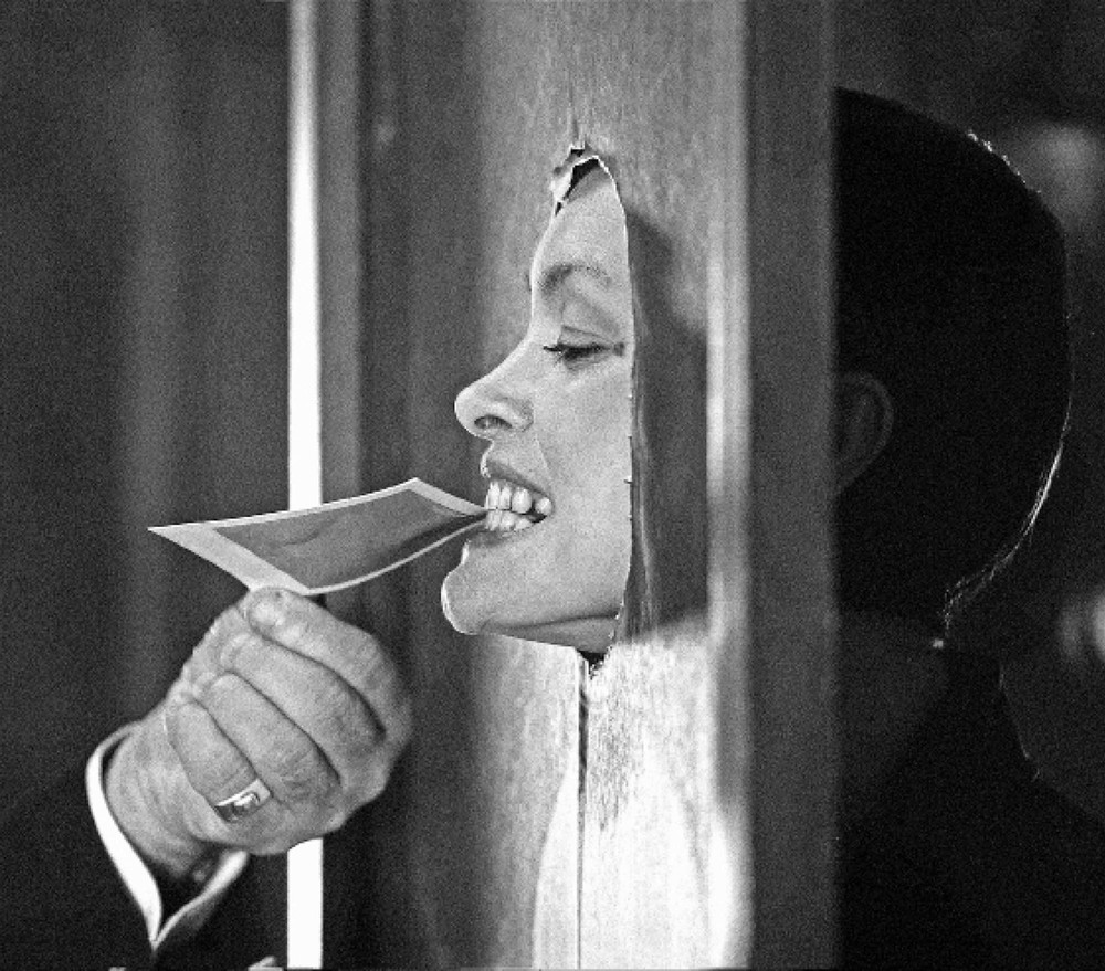Совокупление-смерть тут явно описывается как превращение персонажей в фотографию, в порнографический слайд, в «фотофиниш» из «Увлечений». Фотография навсегда останавливает жизнь и время. «Великий мужчина» никогда не кончает полового акта, как целое столетие не могут завершить его старые слайды. Алиса навсегда, как фотография или кукла, остается в позе совокупления. Ее превращение в «женщину жизни» эквивалентно ее превращению в «идеальную» картинку, неотличимую от порнографии. Смерть и эрос сливаются воедино не в половом акте, но в акте фотографирования. Это тело с подрезанными мышцами явно отсылает к покойнику и к марионетке – важному семиотическому слою фильма.