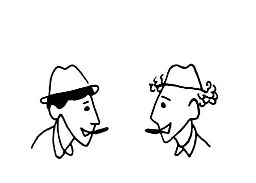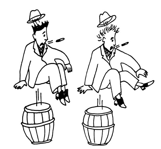 Друзья действительно были одеты с шиком. На них были белые костюмы с белыми жилетами, белые шляпы, белые галстуки на темно-серых рубашках, черные туфли с белыми носками и белыми задниками и, наконец, белые трости в руках.