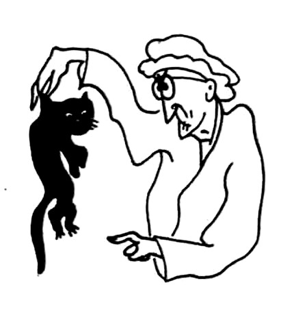 С этими словами кастелянша кинулась к черному ходу, распахнула дверь и бросила бедного котенка с обрыва так, что тот, проделав в воздухе десять сальто, шлепнулся прямо под развесистым дубом в лесу и остался лежать там, не шевелясь.