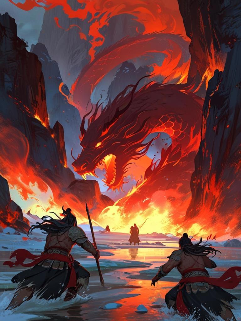 В сотне шагах от него к небесам взметнулся огненный вал. Он рассёк долину пополам, преградив войску дорогу. Он даже не расплавил а раскрошил лёд на реке. Некогда вечерний и тихий пейзаж теперь был озарен багровым сиянием, отчего казалось, что в долине светло как днем.