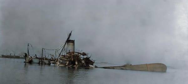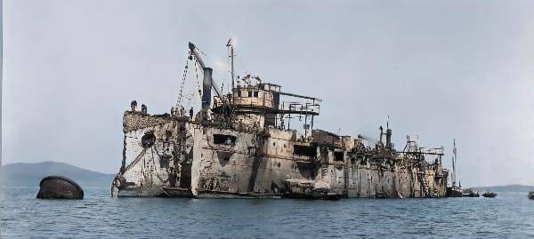 Погреба целые, снарядов завались, пушки целые, торпеды в смазке. Сука, все целое, жратвы навалом! Даже деньги и карты в сейфе нашли! Ну вот как так?