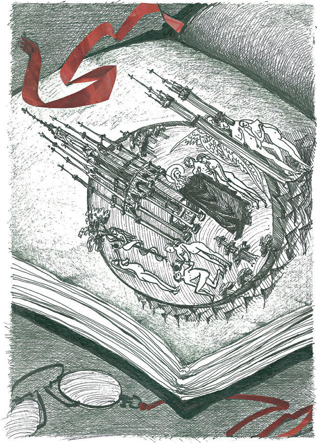 Вр-р-р, рв-в-в… Всплыло слово «реверс», в нем были нужные буквы, но в пару к нему шел «аверс», начинавшийся с а. Чего еще может быть 193? Дивин собрался просить о подсказке и тут – о, этот терпкий вкус догадки! – понял, что подсказка в комнате присутствует. Он развернулся к книге на пюпитре. Между страницами виднелись закладки. Одна слева и несколько справа от раскрытой миниатюры с четырьмя нежными Евами. Одна закладка слева, значит, на семнадцатой странице, разворот – двадцать пятая, и справа должны свисать шесть закладок. Примерно столько их и было.