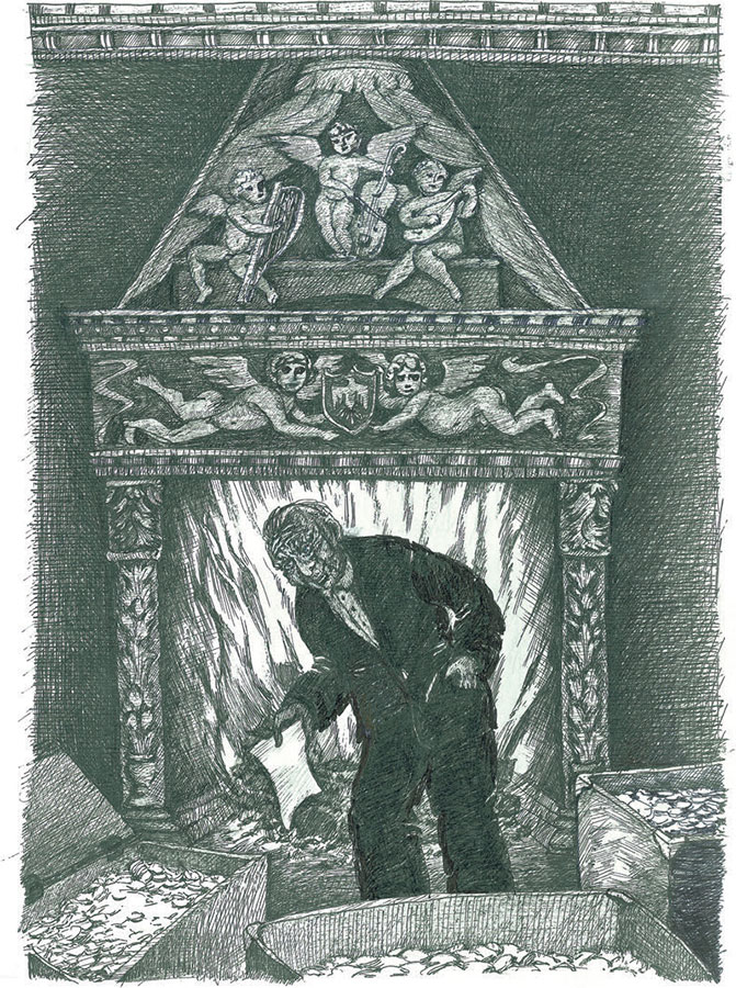 Культ дома дедушки был, а культа самого nonno не было. Где диплом в золотой раме? Среди картин не видны здания растушевкой или сангиной, на и под столами не найти архитектурных увражей. Почему? Похоже, он скоро это узнает. «Люди не умеют молчать, особенно, если они что-то знают», – присказка Эркюля Пуаро. Дивин поднял глаза на люстру, внимательно рассмотрел тисненую ткань на стенах, перевел взгляд на камин…