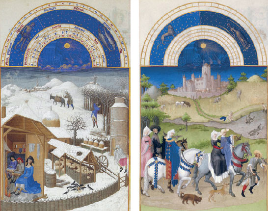 Великолепный часослов герцога Беррийского, цикл «Времена года»: «Февраль», «Август».