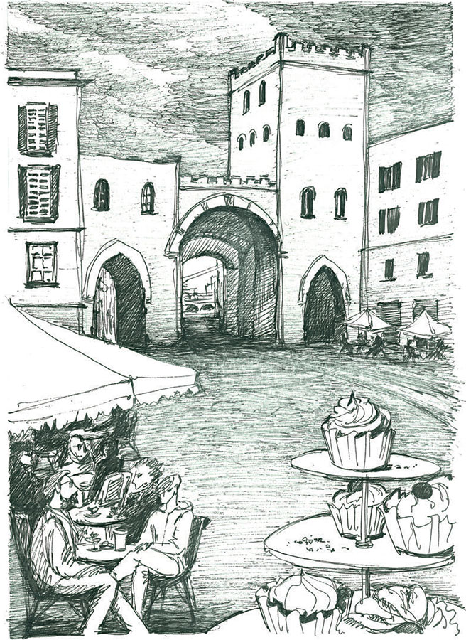 [Закрыть] города XVI века. Из старинных ворот первого оборонного ряда стояли только Порта Тичинезе. Единственные одноарочные, ведь направление в сторону города на реке Тичино не такое значимое, как дороги в Рим, Бергамо, Комо. Улицы в сторону больших городов расширяли в первую очередь, вот и выжили только ворота на второстепенном направлении, тичинские, правда, выросшему городу они стали узки, и по сторонам ясной древней дуги пробили еще два прохода уже со стрельчатыми арками.