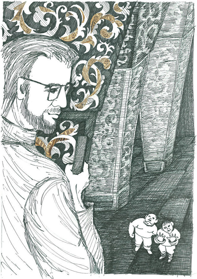 – Церковь оказалась встроена в здание монастыря. Ее можно было обойти по периметру, на уровне второго яруса: сзади – балкон с органом, за алтарем – зал заседаний с креслами и троном настоятеля, по сторонам – коридоры с открытыми комнатками в сторону храма. В каждой такой нише стоял аналой, подставка под колени, широкое окно забрано ажурной решеткой. Чтобы монахи наблюдали за службой, не спускаясь к горожанам, всюду устроены окна. Я бегал, дергал двери, все они оказались заперты, и из каждого помещения через решетки посматривал, как мои преследователи перебираются на хоры. Они не торопились, знали, что деться мне некуда.