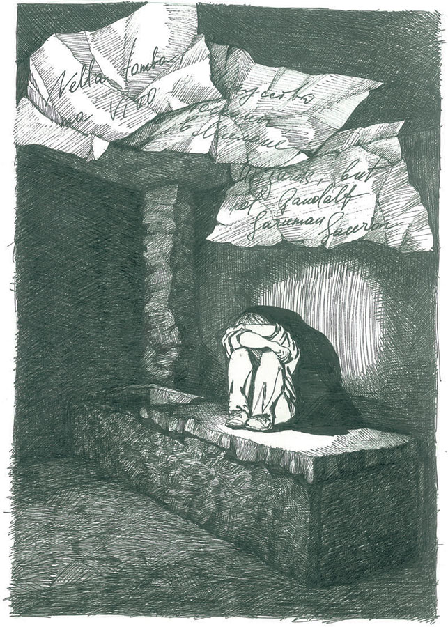 Появление серого волшебника Гэндальфа смутило Дивина, он понял, что не представляет круг чтения Антона. А уж из стопки комиксов «Марвел» могут вылезти персонажи, ему совсем неизвестные. Гэндальфа, Сарумана, Саурона надо было связать с Миланом. Дивин вспомнил памятник да Винчи перед Ла Скалой. Актер Иэн Маккеллен в гриме похож на канонический образ пожилого Леонардо. Леонардо для нас – опередивший время инженер, в чем-то волшебник. Дивин представил сцену боя в подземельях Мории. «Ты не пройдешь!» – кричит Леонардо-Маккеллен и тычет огромной кистью в огненного демона. Демон замахивается, и тут ученики-хоббиты выкатывают на мост круглый танк Леонардо…