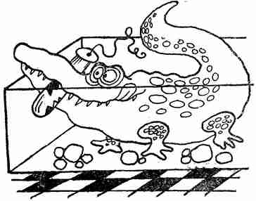 Не прошло и года, как Плутон настолько вырос, что с трудом втискивался в свой водный бассейн. Необходимо было позаботиться о более просторном жилье для него. После долгих подсчетов я наконец купил детскую пластмассовую ванночку и поставил ее посреди комнаты на полу. Жена оторопела, увидев белую ванночку и в ней каймана, но затем свыклась с этим новшеством в нашем быту.