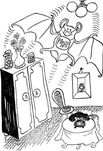 Летучая мышь каждый день выходила из клетки, но долгое время не хотела летать, а лишь ползала взад-вперед по комнате, широко разевая рот. Лежащий на столе кусочек мяса она замечала, когда случайно натыкалась на него носом. В мае я перед кормлением часто переносил ее в большую комнату, чтобы она попробовала летать, но она решилась на это с большим трудом. К взлету она долго готовилась: все быстрее поводя головой из стороны в сторону, испускала ультразвуки, при этом натянутая межбедренная летательная перепонка ее часто-часто подрагивала. После долгих раздумий она, наконец, выпустила крылья, распростерла их на полу – размах ее крыльев составлял 60 сантиметров – и на несколько секунд замерла в таком положении, а затем, подскочив на 5-10 сантиметров, взлетела. Поскольку этот вид летучих мышей обладает крупным туловищем, ей необходимы большой размах и должный простор для того, чтобы удержаться в воздухе. Поначалу, долетев до стены, она, правда, поворачивала обратно, но па этом взлетная инерция иссякала, и она грузно шлепалась на пол. После неоднократных попыток она приспособилась к размерам помещения и, ловко лавируя, могла довольно долго летать по комнате.