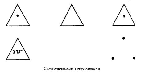 Нам не представляется возможным изложить на этих страницах обширный символогический корпус Королевской арки, включающей в себя и библейских персонажей (сановники капитула носят имена библейских пророков), и ритуальные одеяния. Ограничимся указанием всего лишь на три наиболее важных символа: тройная «тау», неизреченное имя и печать Соломона, иначе – шести конечная звезда, экзальфа, звезда или щит Давида.
