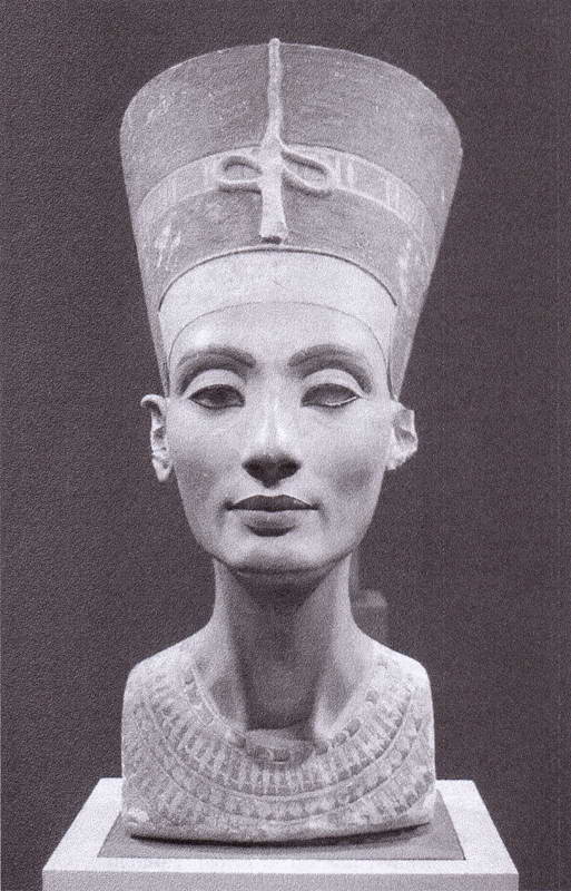 Вслед за этим, продолжая раскопки, археологи обнаружили проступившую из кирпичной пыли часть другой скульптуры – кусок окрашенного в телесный цвет затылка со спускавшимися вдоль шеи красными лентами. Сразу поняли, что это – бюст жены фараона, тоже в натуральную величину. Немедленно были отложены все инструменты, и дальнейшую работу делали только руками. Вот показался и синий головной убор. Наконец, бюст царицы был поднят. Он оказался не только почти целым, но и совершенно поразительным по красоте и необычайной трактовке!