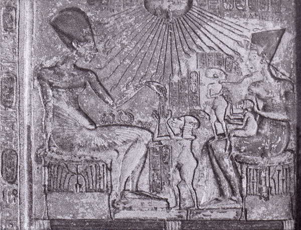 Вероятнее всего, впервые такие сцены появились в росписях частной половины дворца. А затем одобренные (а может быть, и потребованные) фараоном, получили широкое распространение за пределами дворца – не только на стелах домашних алтарей, но и на рельефах гробниц знати, где начинают постоянно показывать вместе с фараоном и всю его семью. Мы видим царицу и даже царевен участвующими в награждениях вельмож и жертвоприношениях Атону, не говоря уже о семейных обедах и ужинах во дворце.