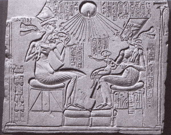 Сохранились фрагменты и других подобных рельефов. Очень интересна часть стелы с изображением Эхнатона, на коленях которого сидят царица и две дочери. Характерно, что все эти изображения находились в домашних алтарях в жилищах Ахетатона, заменяя культовые фигуры царя и царицы. Очевидно, новое содержание таких стел очень подходило для семейного культа, и они пользовались большой популярностью.