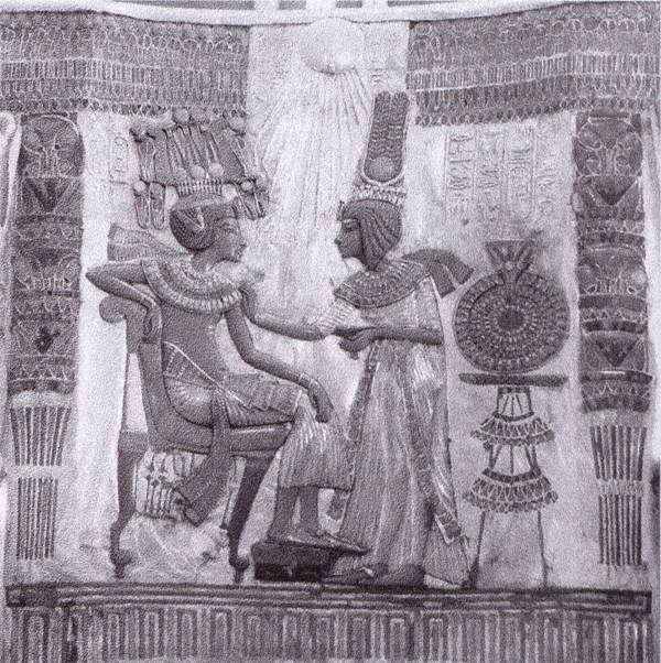 Тутанхамон и Анхесенпаатон. Изображение на спинке золотого трона из гробницы Тутанхамона
