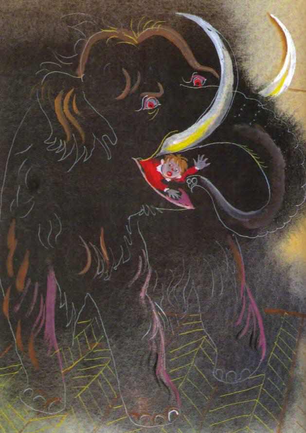 Представьте себе, однако, когда утром мама понесла ему завтрак в стиральном баке, то услышала от мамонта: