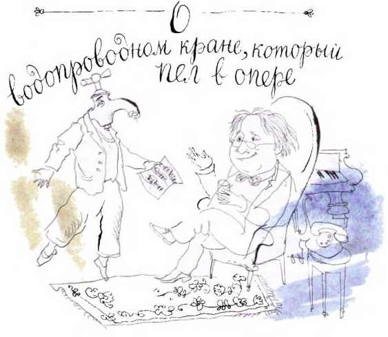 Оперный театр – это сплошное пение: тут поет мужской хор, там – женский, а вон там – детский. Но кран это нисколько не удивляет, кое-какой опыт у него все-таки есть. Он направляется прямо к директору и поет ему подряд с десяток-полтора разных опер.