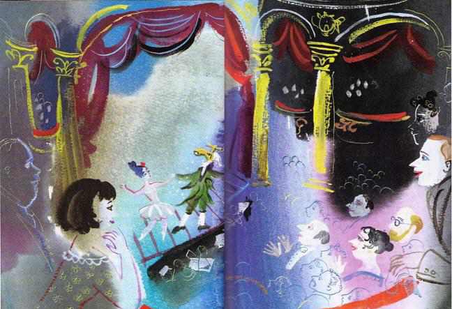 На кран тут же надевают зеленый костюм, парик, тащат на сцену, зрители в восторге, все аплодируют и кричат: «Вот это да! Совсем другой Водяной, с него действительно вода капает!» Все это тут же разнеслось по городу, Как только об этом узнали на кухне, два старых кресла тут же натянули на себя красную бархатную обивку и отправились в театр. А там все кресла обтянуты красным бархатом, и ведут они себя тихо. Старые же кухонные кресла все время скрипели, чтобы всем было слышно, как они говорят друг другу: