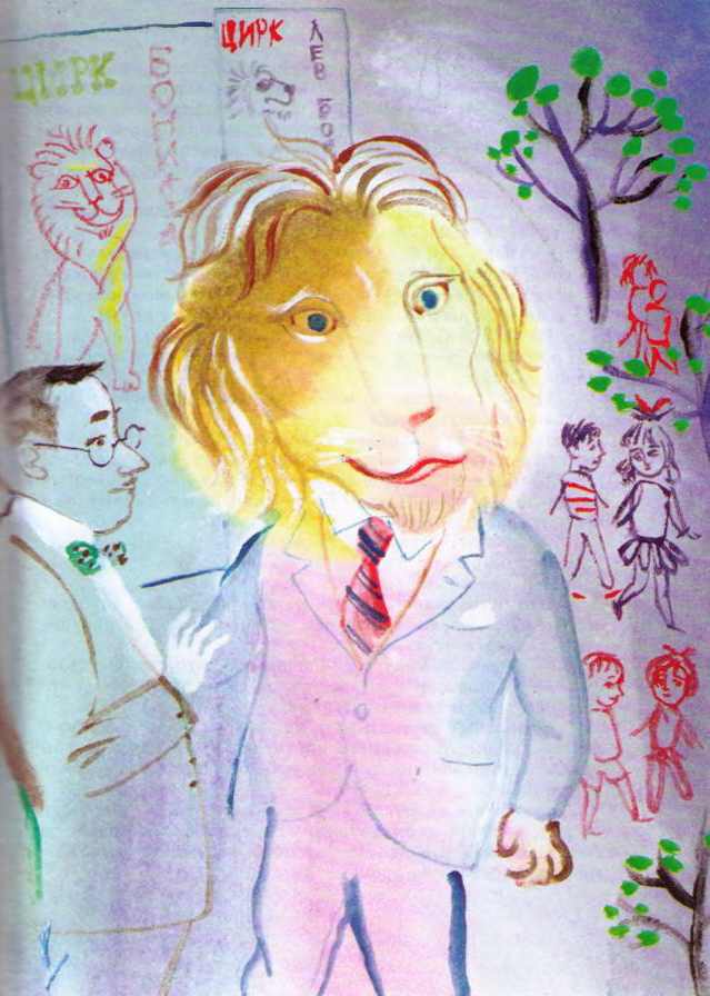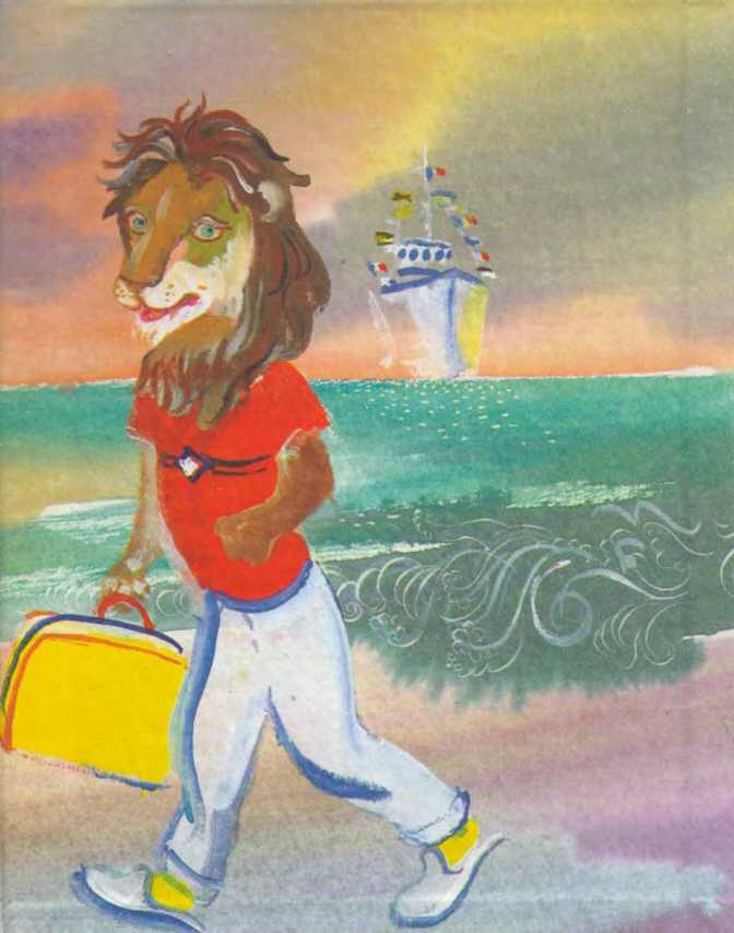 И вот он едет в поезде, глядит в окно на домики и сады, машет детям, а дети глядят и думают: «Смотрите-ка, цирк переезжает». Им и в голову не приходит, что это едет не цирк, а всего лишь один счастливый лев, который путешествует сам по себе, едет на каникулы к бабушке. Потом он плывет на пароходе: кидает акулам рогалики, загорает на палубе и думает о том, как он пойдет купаться, и это будет прекрасно, и никаких тебе представлений ни днем, ни вечером, как он сможет каждый день высыпаться, есть бананы и беседовать с бабушкой.