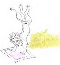 И Бонифаций рассказывает им, как он ходит на руках, делает вольные упражнения, крутит колесо. А так как львы удивлены и не понимают, о чем речь, он им показывает, как крутят колесо.