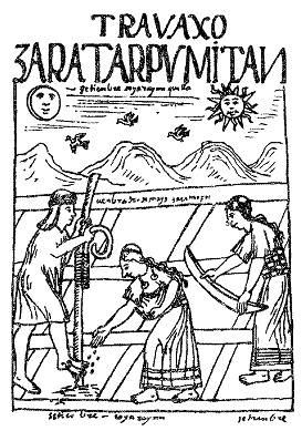 Бесчисленные дары перуанских полей требовали неустанного внимания мужчин и женщин, которые сообща занимались обработкой полей и уборкой урожая. На полях работали исключительно люди, поскольку андская лама не годилась в упряжку. Перуанцы даже не знали, что такое плуг. Крестьяне Тауантинсуйу обрабатывали землю с помощью так называемой «чакитальи» – длинной палки с бронзовым острием.