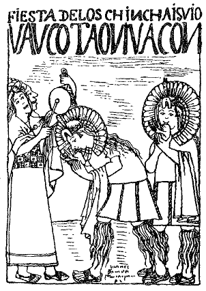 Известен также и целый ряд народных танцев, в которых участвовали как мужчины, так и женщины. Эти танцы, однако, не были парными, чаще всего танцоры все вместе образовывали большой круг («коло»), как это делают, например, балканские славяне. Перуанцы исполняли и танец с масками. Назовем, к примеру, «танец демонов» («ваконов»), который танцевали только мужчины; они изображали различных животных. Многие танцы индейцев империи инков исполнялись в специально предназначенных для этой цели костюмах, например крестьянский танец вызывания дождя, который назывался «чапайгуанло». Автором этого танца был Инка Пачакути (что только не придумал этот человек!). На голове у исполнителей танца красовались богато украшенные налобные повязки из птичьих перьев.