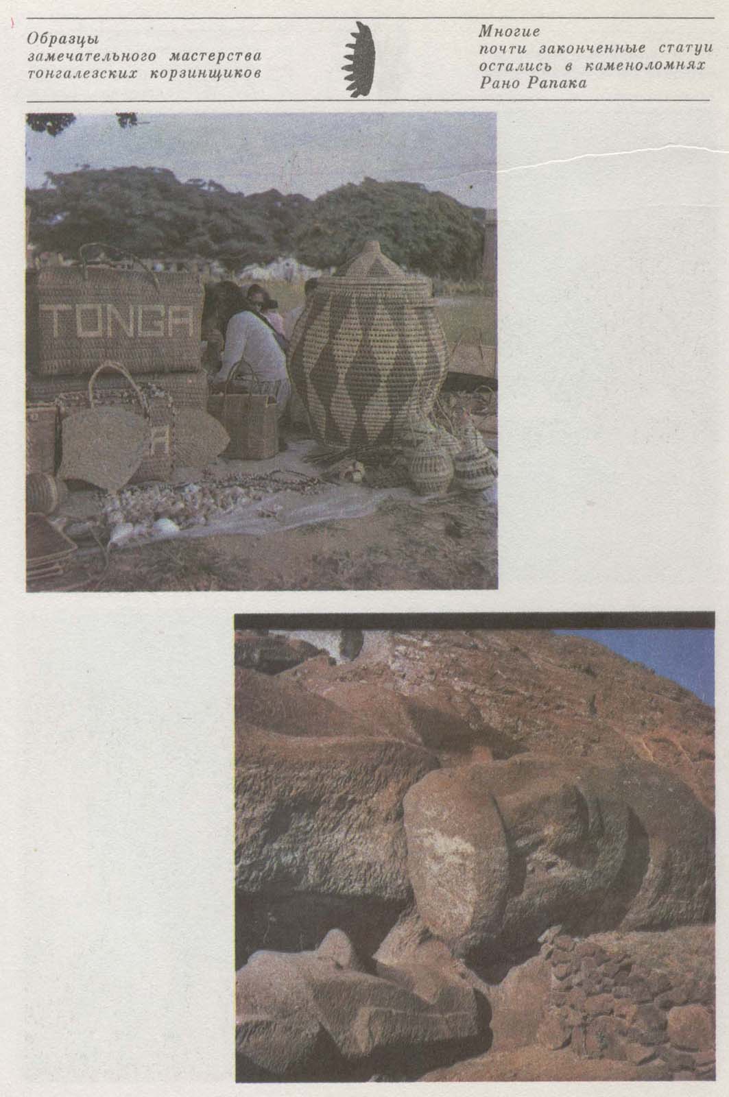 12. Образцы замечательного мастерства тонгалезских корзинщиков. Многие почти законченный статуи остались в каменоломнях Рано Рапака.