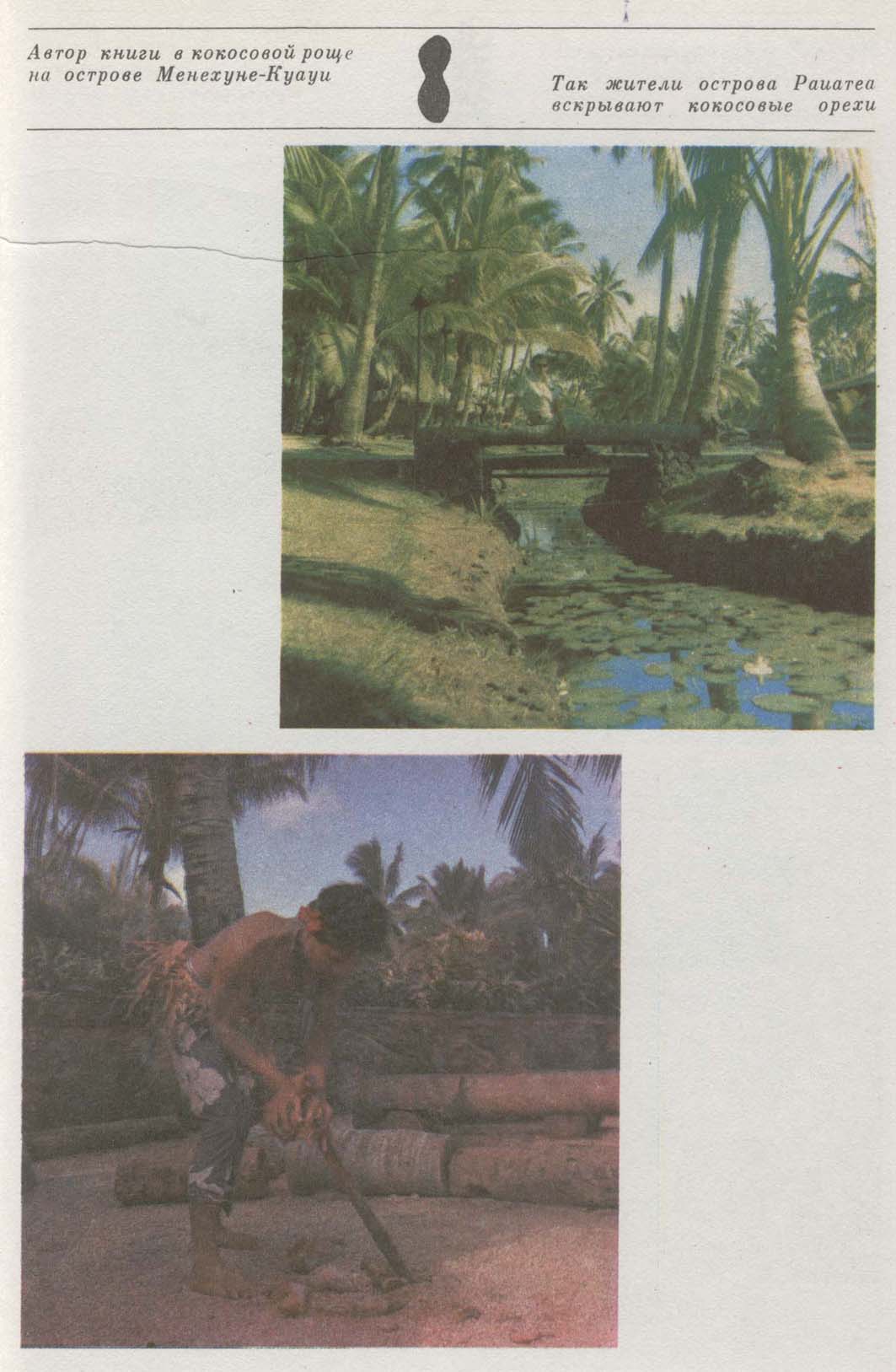 13. Автор книги в кокосовой роще на острове Менехуне-Куауи. Так жители острова Раиатеа вскрывают кокосовые орехи.