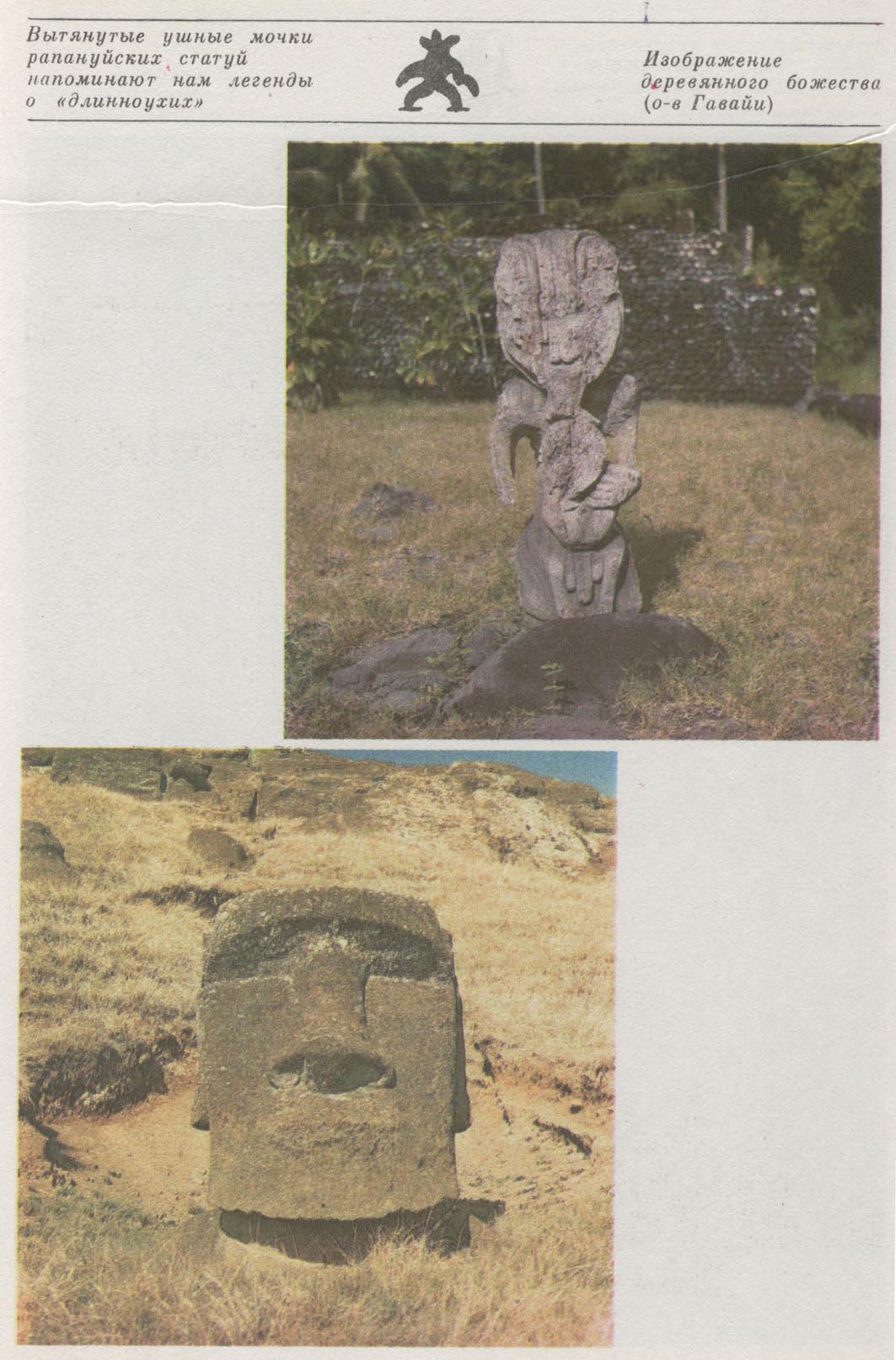 5. Изображение деревянного божества (о-в Гавайи). Вытянутые ушные мочки рапануйских статуй напоминают нам легенды о «длинноухих».