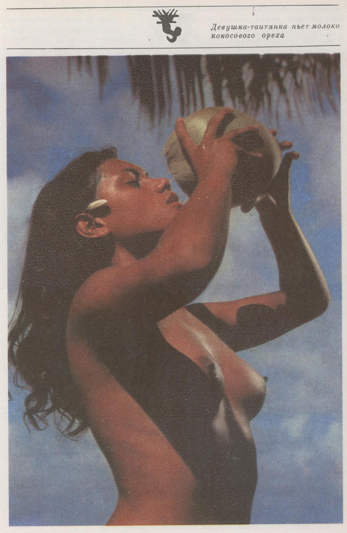 7. Девушка-таитянка пьет молоко кокосового ореха.