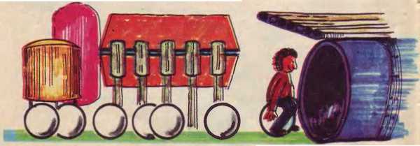 Мальчик лежал у края дороги ошеломленный. Не знал, что произошло. Потом встал, не совсем придя в себя. Он здорово расшибся. Сильнее всего болела правая рука. Оказывается, магистраль, по которой он только что убегал, в действительности шла то вверх, то вниз. Он снова пошел, внимательно оглядываясь по сторонам – дорога вела к какому-то огромному сооружению, вернее, к огромной машине, которая передвигалась как бы по огромной трубе. Оттуда и шел звук, перепугавший мальчика. Но любопытство оказалось сильнее страха, и Каролек решил посмотреть, что же все это значит. Как раз представился отличный случай: машина остановилась. Да, но как туда попасть? Вдруг услышал чей-то незнакомый голос.