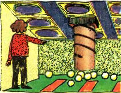 Не успел Принтек сказать, как вдруг Каролек, который заглядывал в туннель, с криком отскочил. К сожалению, слишком поздно. Из туннеля выкатывалась огромная масса шариков. А наш ошеломленный любитель приключений растирал очередную шишку, на сей раз на лбу.